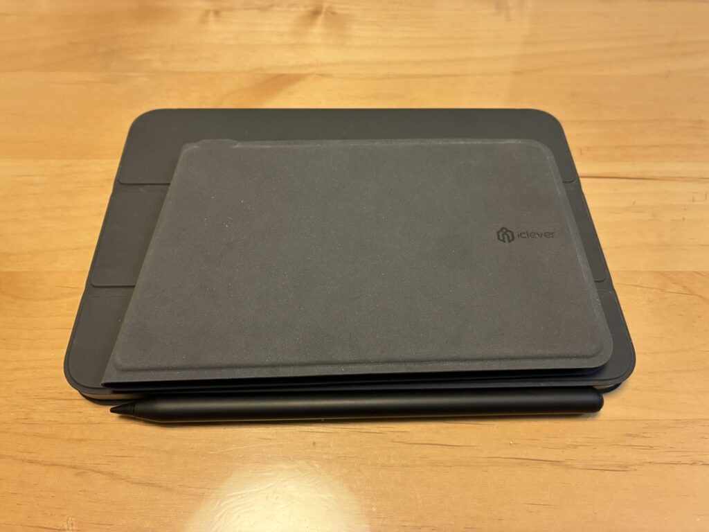 使用していない際は、iPadminiの薄さと同じ程度の折りたたみキーボードの薄さのみで、そこにpencilもつけるだけの大きさで、だいぶコンパクトに持ち運べます。