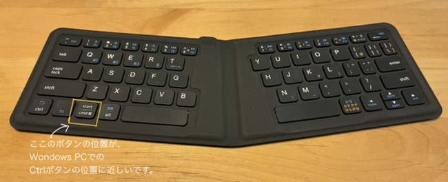 このキーボードだと、キーボード自体が斜めなことで指の位置が、普段のWindowsPC利用時の指の位置と異ならないため(”Z”ボタンの左下側にボタンがあるため)、違和感が少なく済みます。