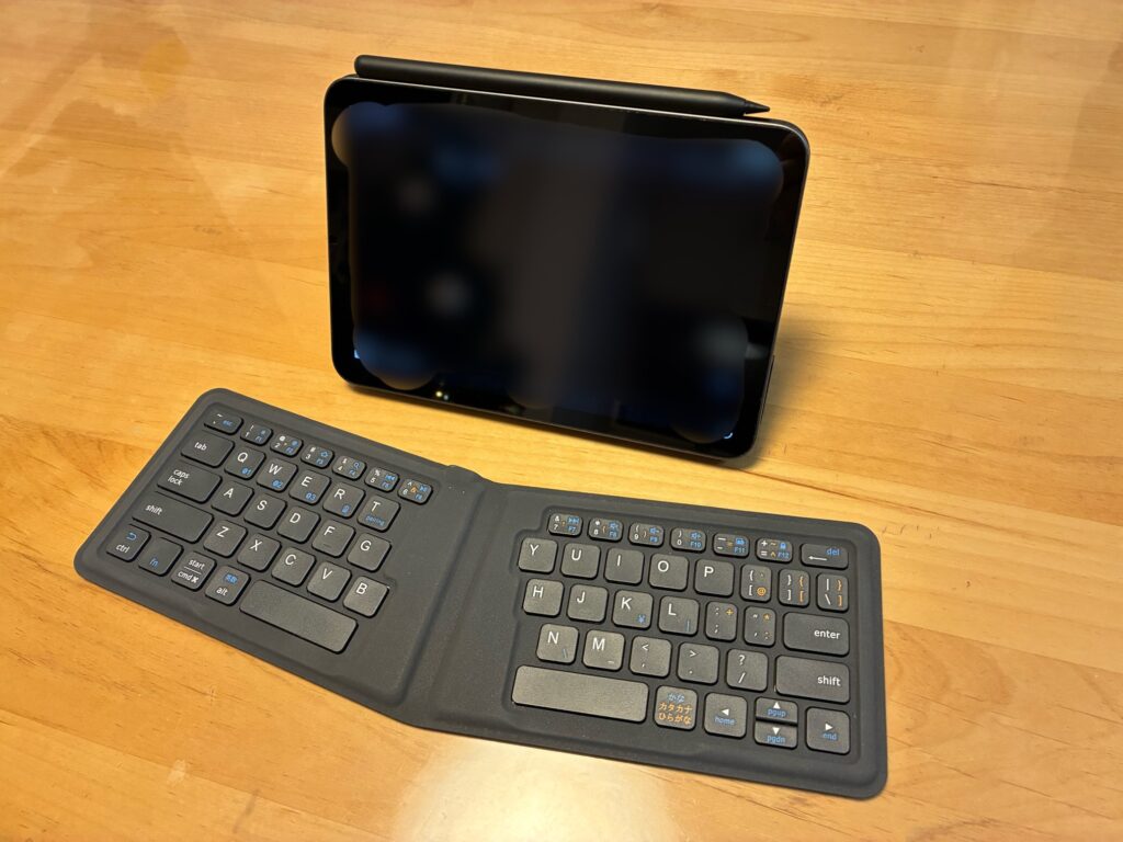 個人的には、iPadminiの画面サイズ(8インチ)と、折りたたみキーボードで、ブログを書くのには十分です。